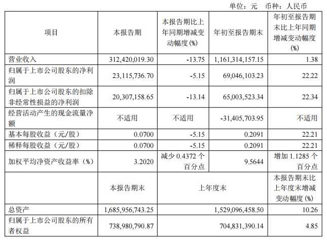 寶光股份2024年三季度主要會計數據和財務指標